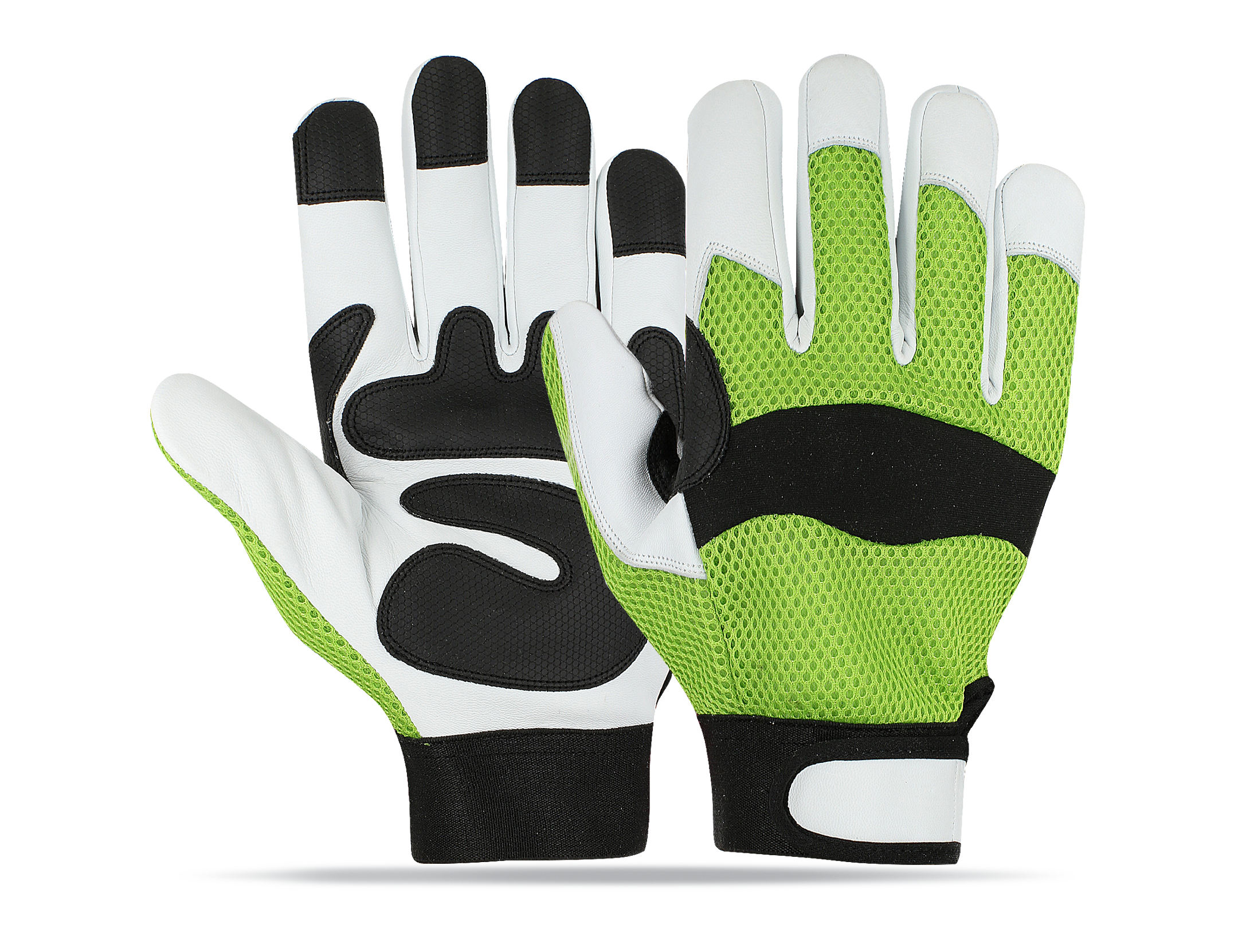 Additional: Elasticated cuff / Velcro tape Re-inforced palm padded index finger with 3 fingers leather tip. Fleece lined